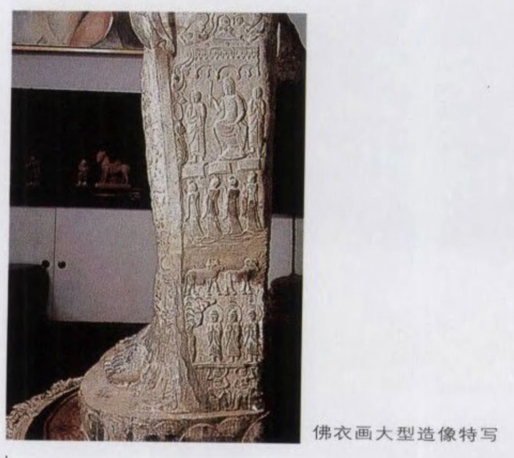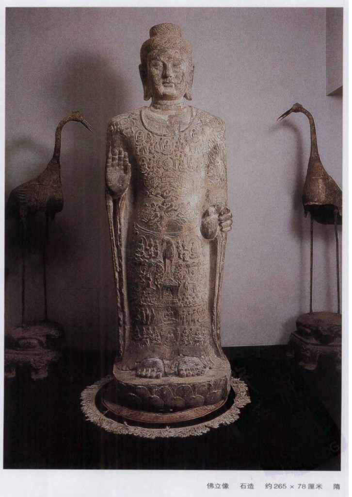 隋僧伽梨佛立像 僧伽梨即刻佛衣畫、衲衣畫,是印度 Samghati 的音寫。也即佛家中的大衣、重衣之謂。衣上有銘文清楚刻出《人中像盧舍佛》。這種造像只出現了一百年,隋代前後。