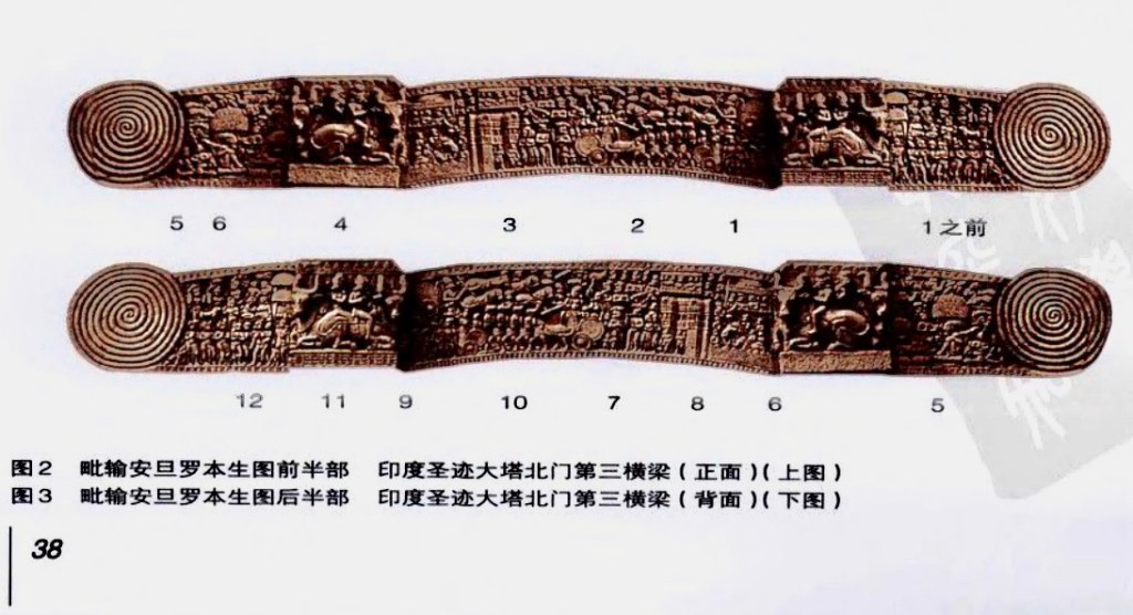 梁出現阿育王像,背光後有供養人,台柱有銘文