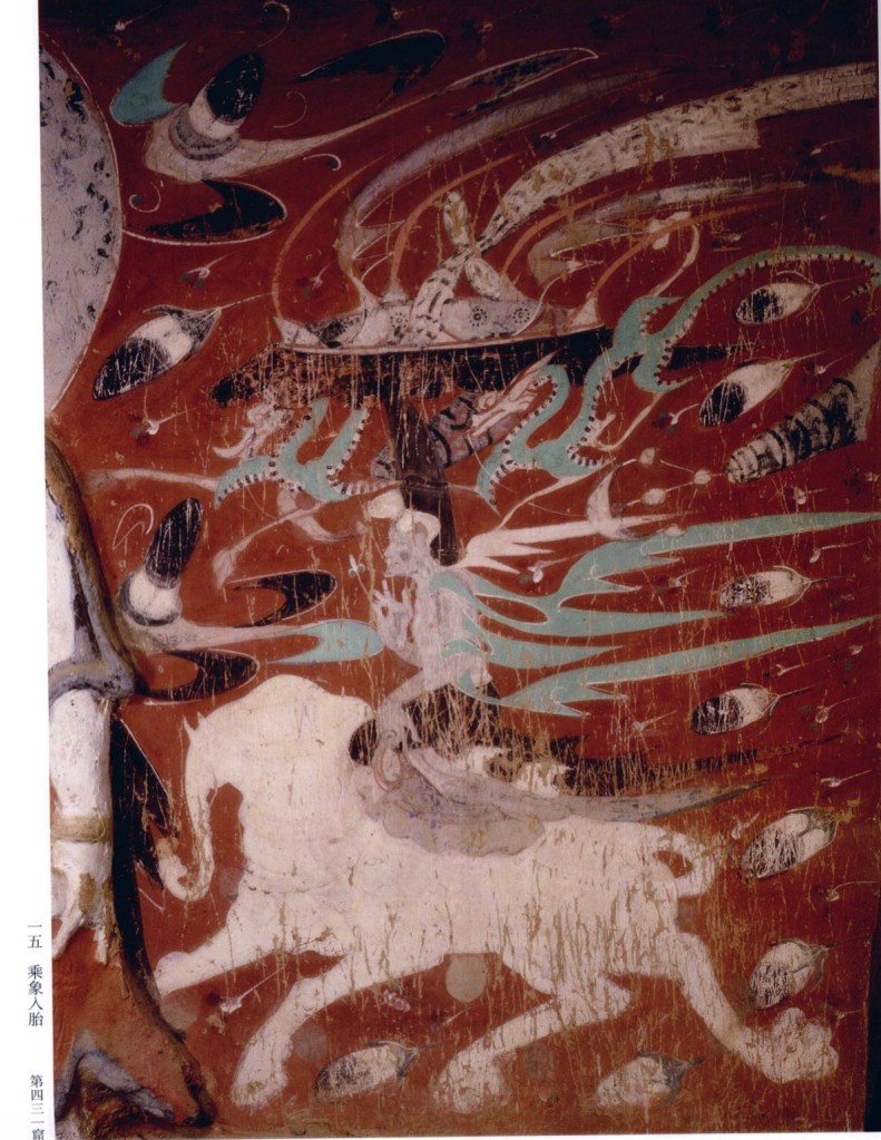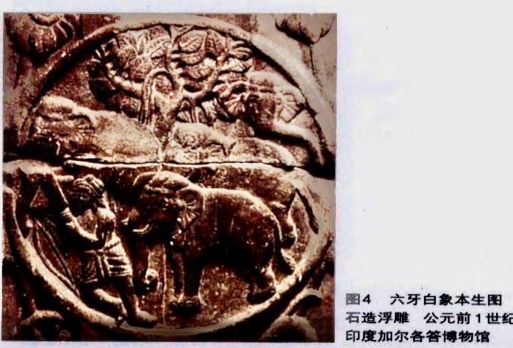 (2)象形降胎 釋尊知其將下生轉胎于世間,選了迦華羅城的城主淨飯王家,以六牙白象之形,神降記胎于摩耶夫人腹中。