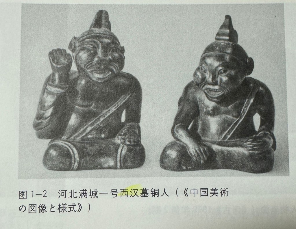 六朝佛教做像一書卻指出,原來在西漢已有小銅人與佛像特征十分相似:肉髻、𥘵右肩衣服及右手上舉,衣着方面卻是袾菟羅式的。在貴霜時期犍陀羅及祩菟羅差不多是同時開始做佛像,只不過犍陀羅影響大很多。𧙕菟羅很少佛像傳世。一些學者認為其實真要比較,祩菟羅可能更早一些。所以有機會袾菟羅的佛像一早傳入西漢,但數量少。到稍後的東漢,犍陀羅外做像便大行其道. 西漢小銅人👇