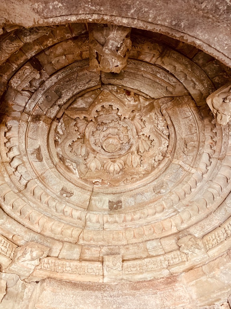 他左手持棍棒 (Laguda or lakula) 所以他名為 Lakulisa 。右手持香櫞,其實現在看不清楚了。小門不可以進入,但將手機伸入去也拍到美麗的藻井。