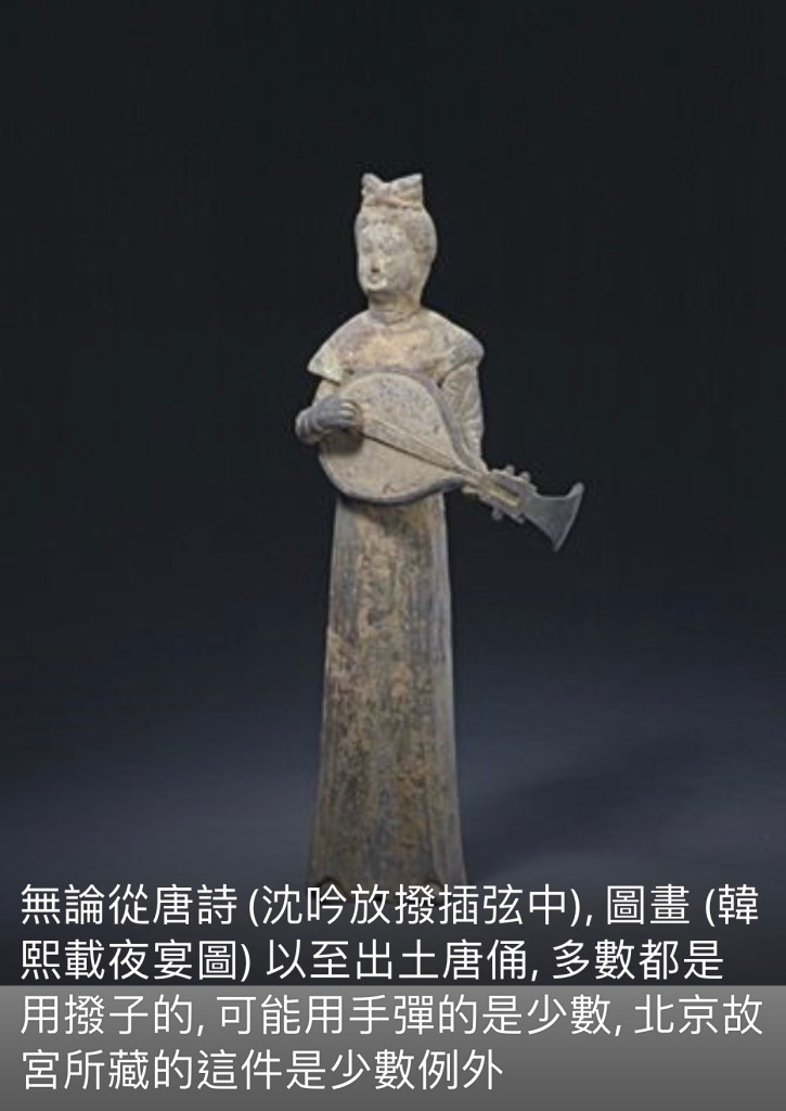 可以用手指彈或用拔彈,唐朝開始多用拔,很少用手指了