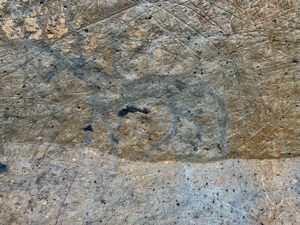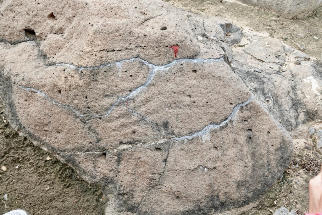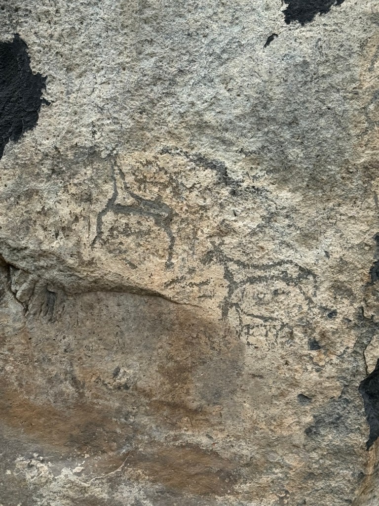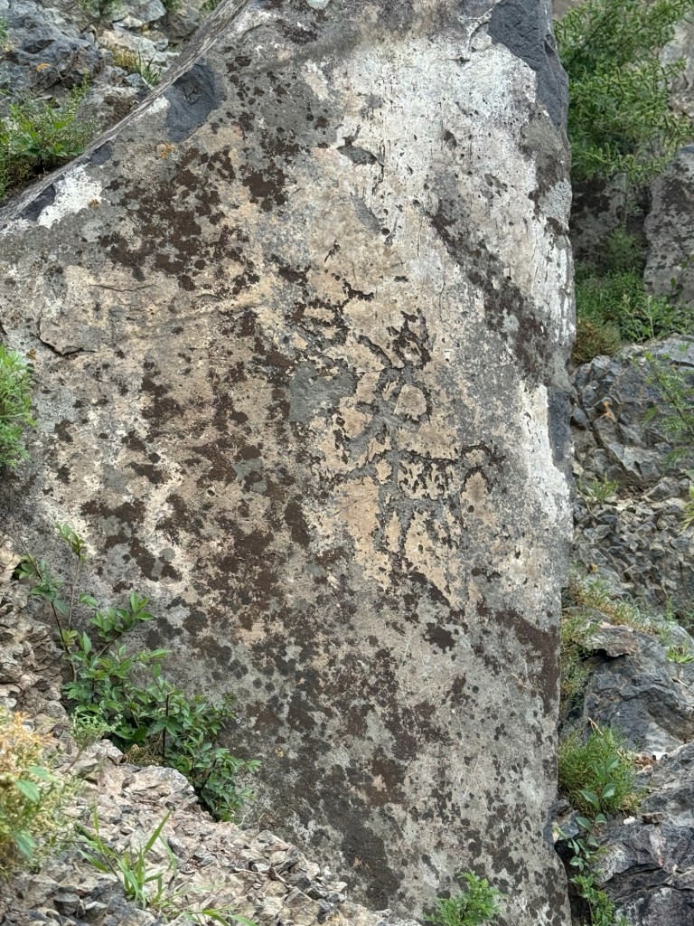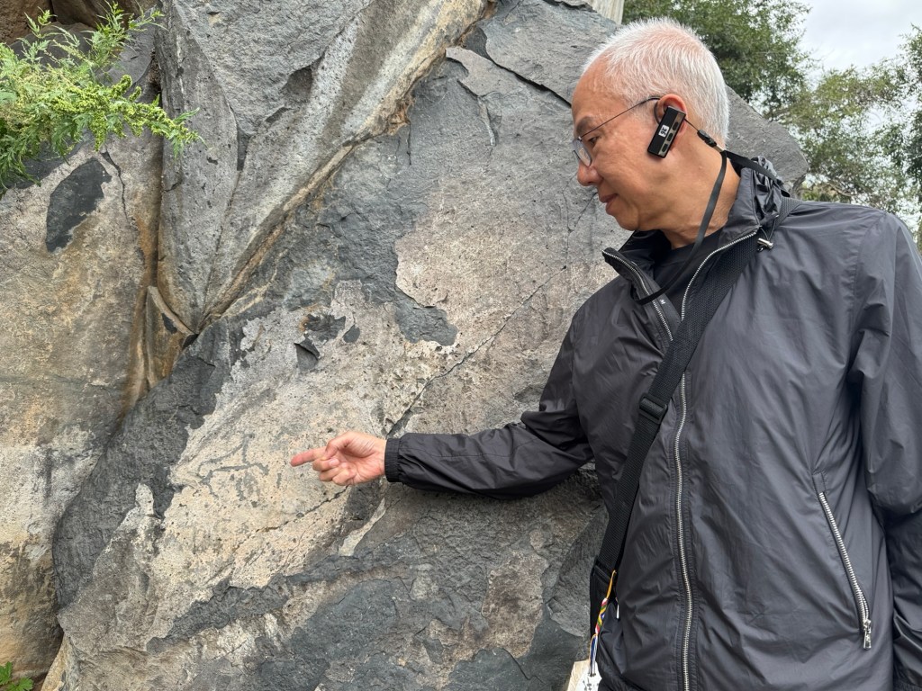 下午參觀砧子山岩畫,大概1500年左右,即南北朝時代的東西,有一段碎石山路,上還可以,落有點困難,好在眾人皆安全。