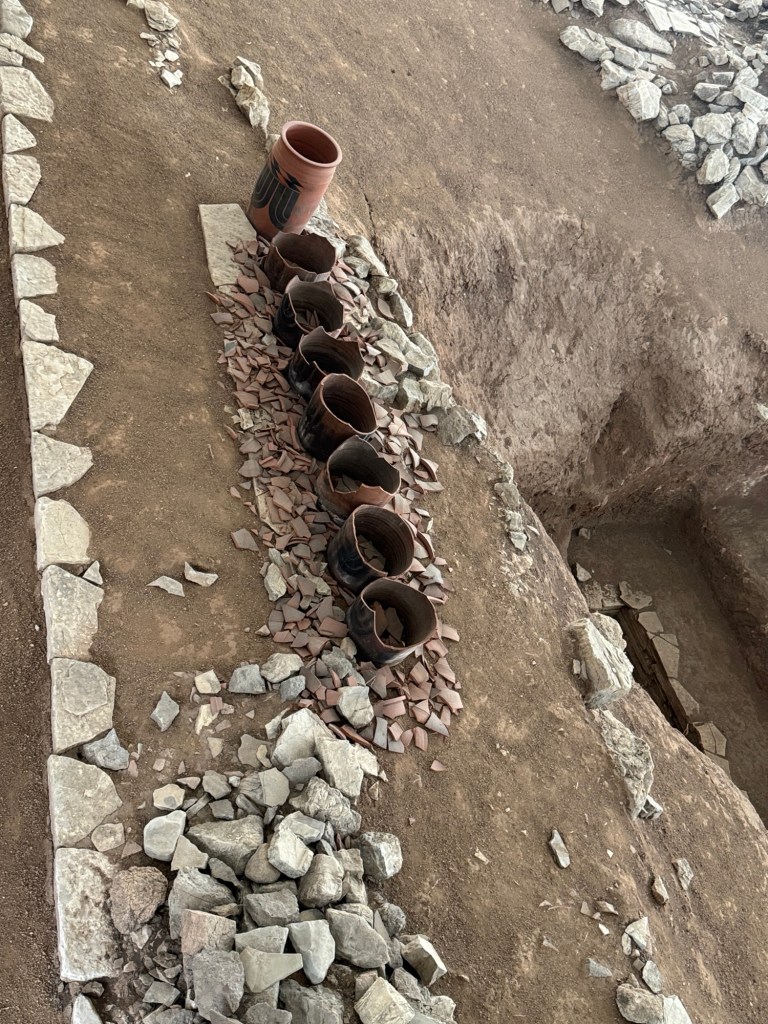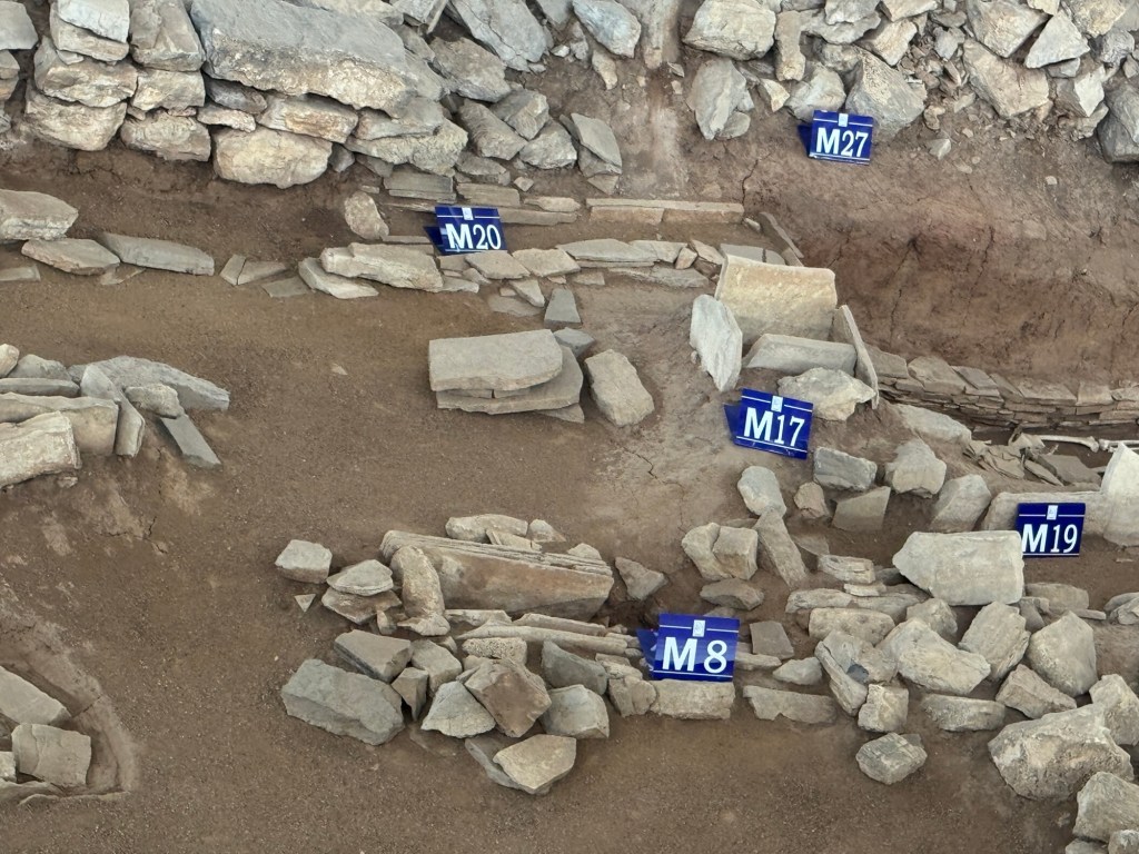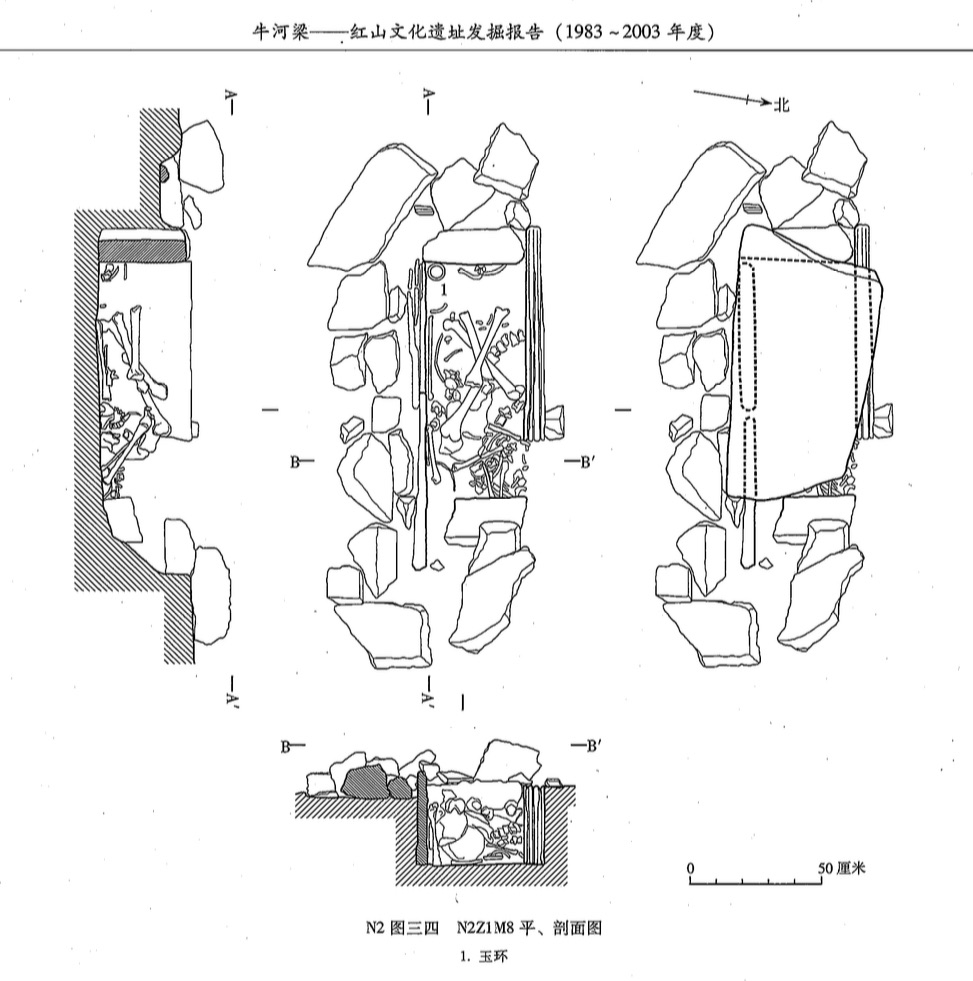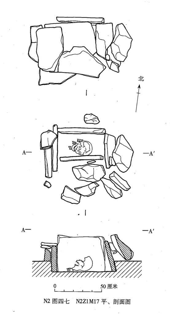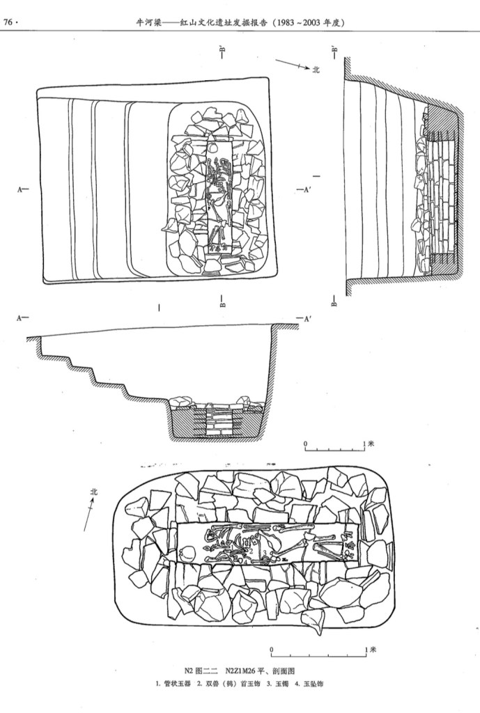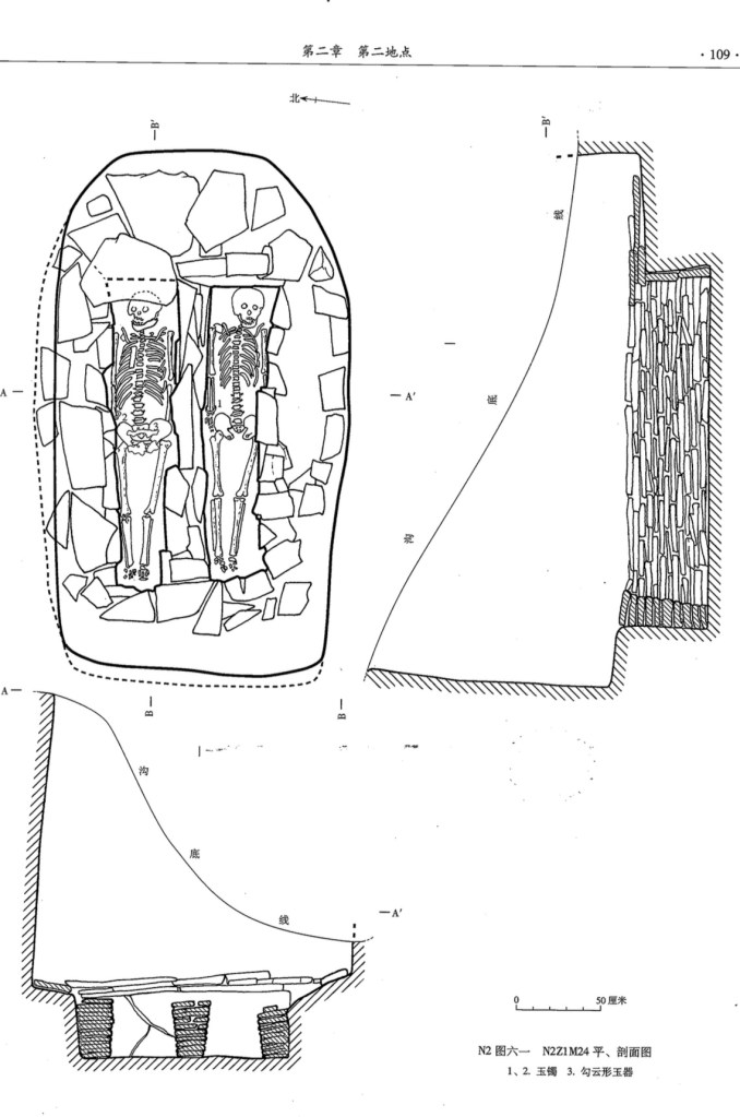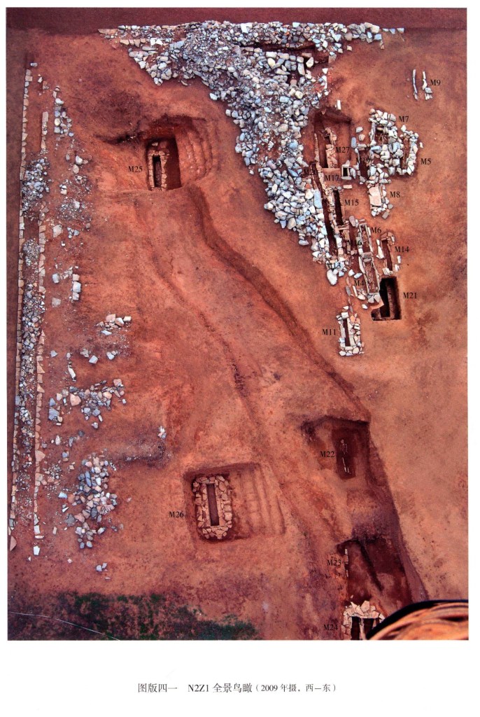 一號冢共發現25座墓,筒形陶噐多置於冢界石牆而不是放在個別墓穴周圍。