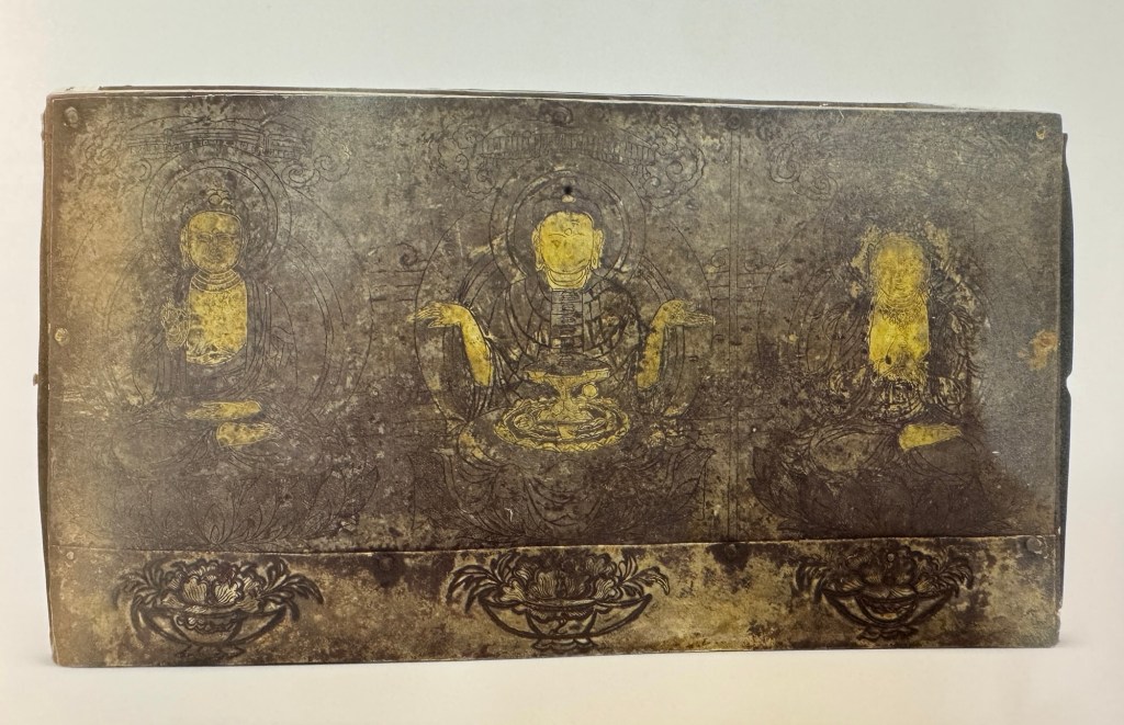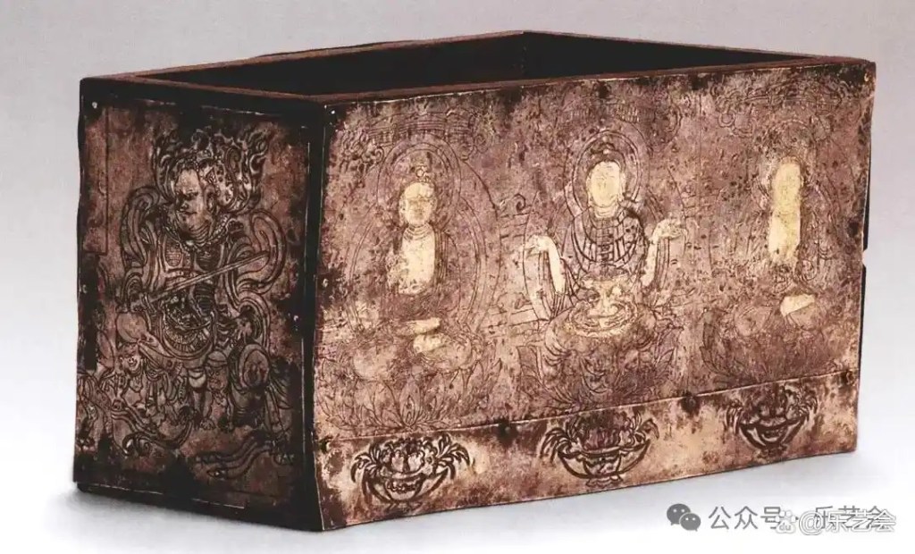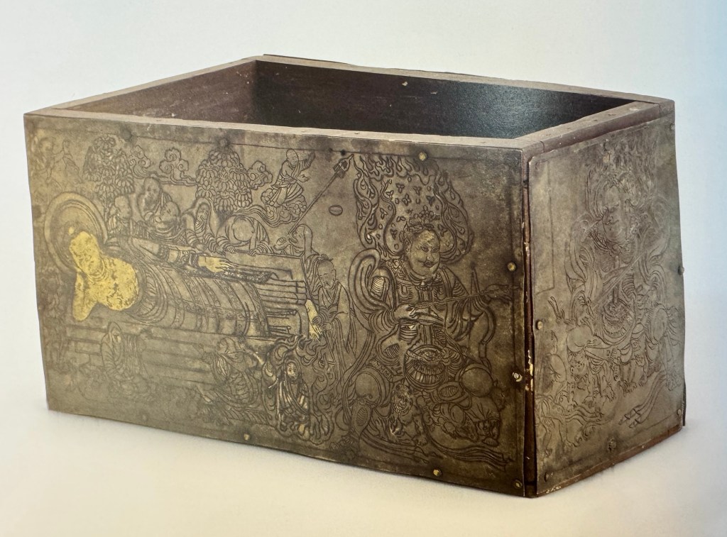 書內圖片清晰,這個北塔博物館石函涅槃圖,細節便很清楚。右上方的錫杖、鉢盂均清晰可見。周圍除了哀傷弟子及自焚的須跋陀羅之外,右邊有天王。另外在西夏,遼金地區佛祖腳下還有一位人物,印度醫王耆婆。他曾經幫過佛陀醫沾過多種疾病包括腳病,所以會出現在涅盤像,撫摸佛祖雙腳。