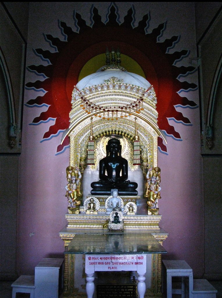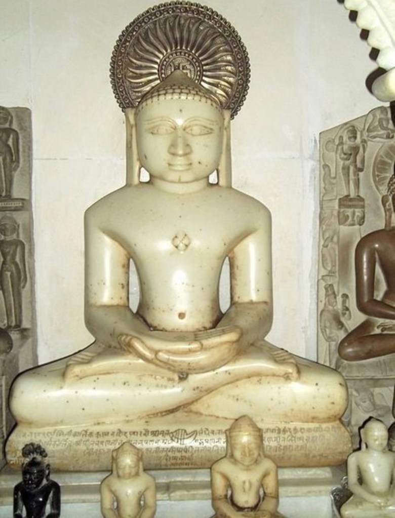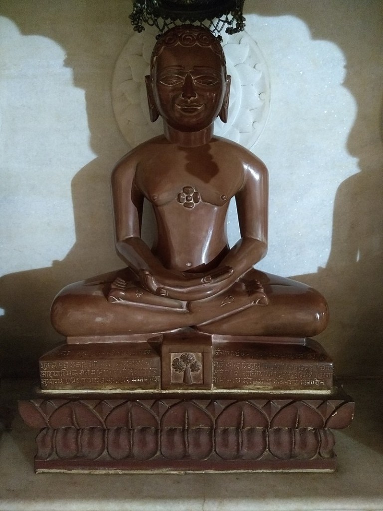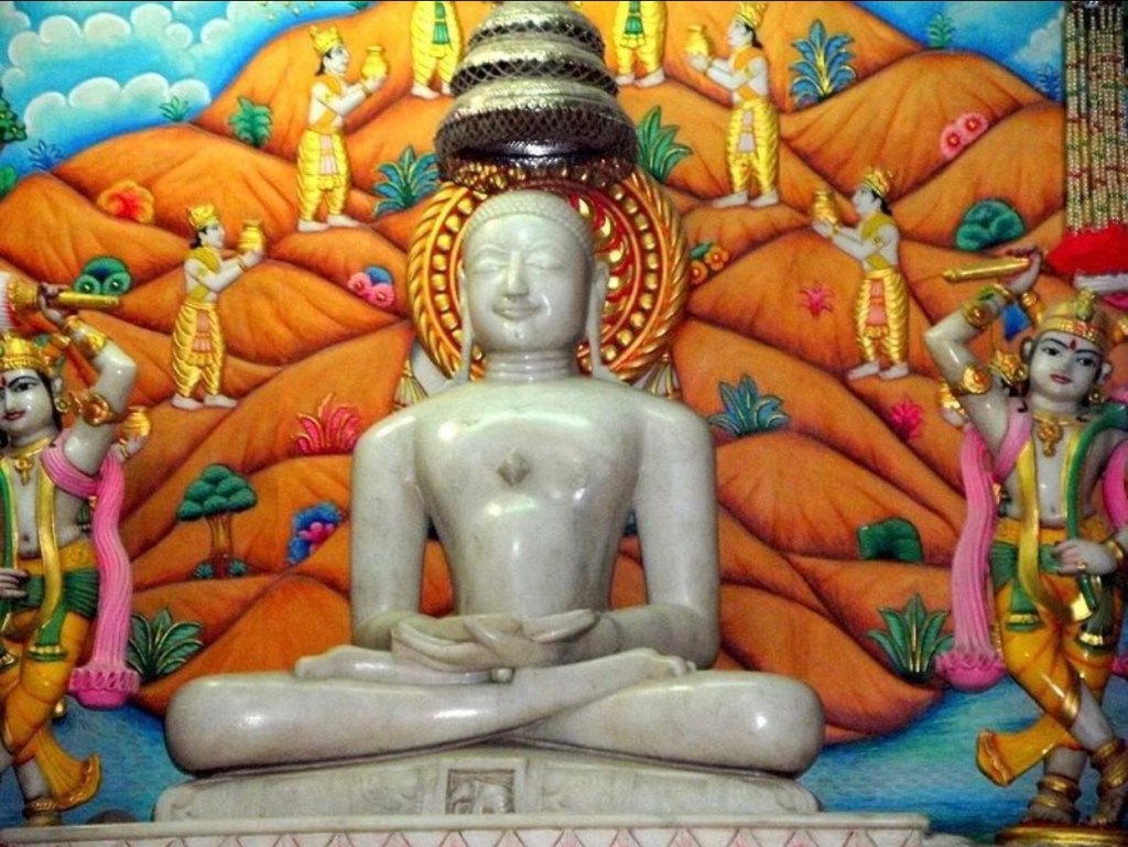 始創人為伐達摩那(又稱摩訶昆羅,意為大雄,前599-前527。他比釋迦牟尼早出生, 是第24祖,第23、24 祖都是歷史人物。耆那教不信有神,認為世界是由極微構成,不是由神創造。極微是梵語,又譯鄰虛塵,是組成一切物質(色)的最小單位。主張:正知、正見、正行,由五誓言構成: