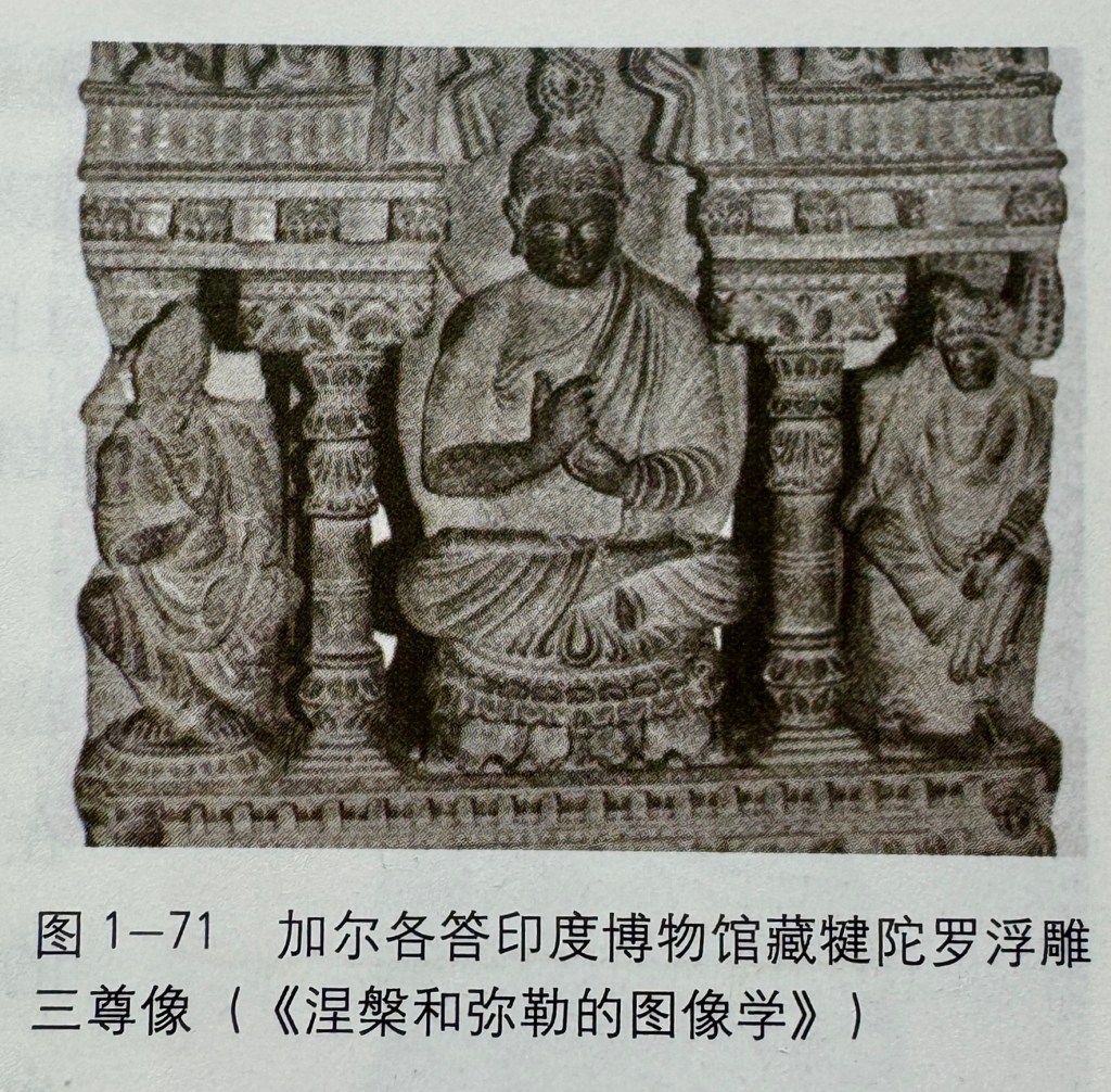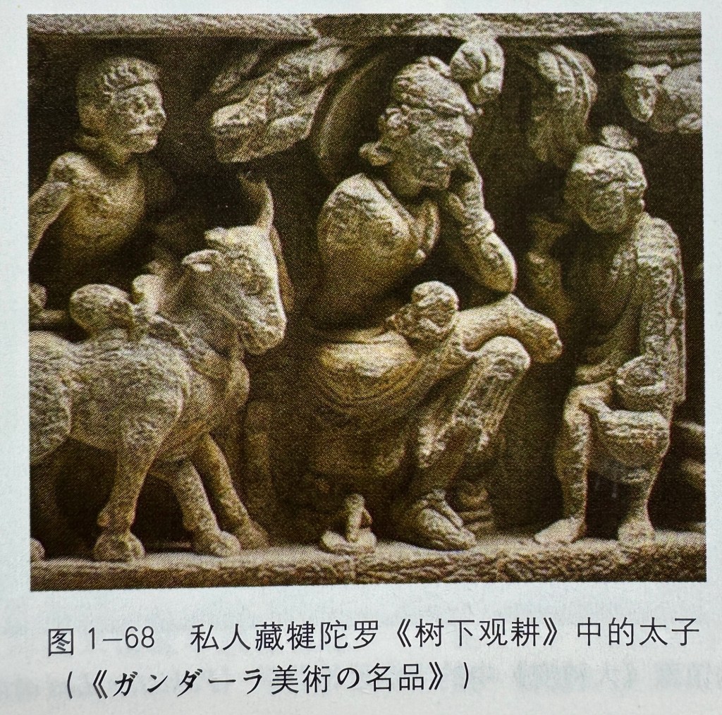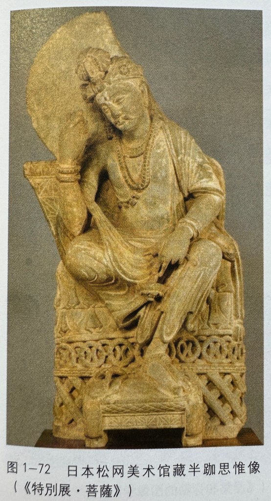 犍陀羅也有太子作半跏思惟狀的,左下有一半跪禮拜者,右下有持傘者