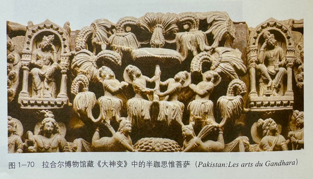 大神變出現成對的半跏思惟像,通常一身手執蓮蕾(?觀音),另一身手執華鬘(?)