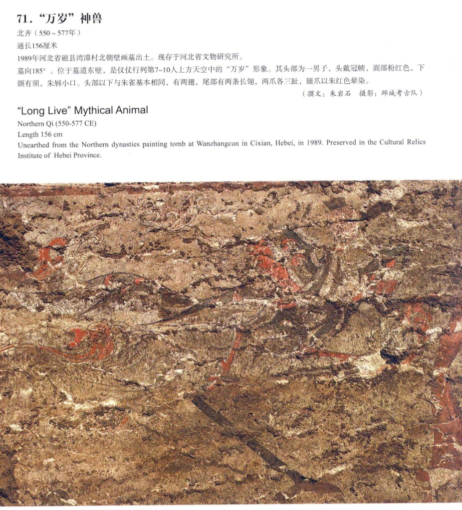 历代学者所谓《山海经图》于两晋亡佚的结论,应该指的是作为官私庋藏的“图书”(绢帛书、画)而言。而其他载体的《山海经》图像,譬如在殿宇壁画、墓葬壁画、砖石铭刻和各类艺术品上,是绝不可能完全消失的。但历代学者将这个结论扩大化了,一般认为两晋之后就见不到《山海经》图像了。现代考古学的成果,是古代学者无法想象的。从这个意义上,我们可以说《山海经》图像并没有亡佚。