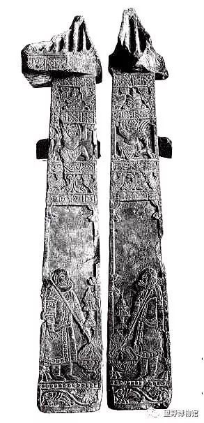 至东汉晚期,大傩题材中的方相氏与十二兽之间的界限逐渐模糊,且独立出现的方相氏形象与后期的畏兽形象更为接近。如四川出土的王晖石棺。王晖石棺正面刻有:建安十七年(212年)纪年。盖首雕一兽面衔环,兽面双爪扣环,肩生双翼。根据马承源 “有首无身都是纹饰发展阶段中较晚的简略形式”这一说法,这应是方相氏在汉代后期的简略形式。结合下方棺首的“半启门”纹饰,这依旧构成了打鬼与升仙相辅相成的一贯组合:长袍童子倚门而立,接引死者通过棺门升往仙界,这是升仙;而盖首的半身方相氏则依旧行使辟邪之能,护卫死者的升仙之路不受恶鬼的侵扰,此谓打鬼。