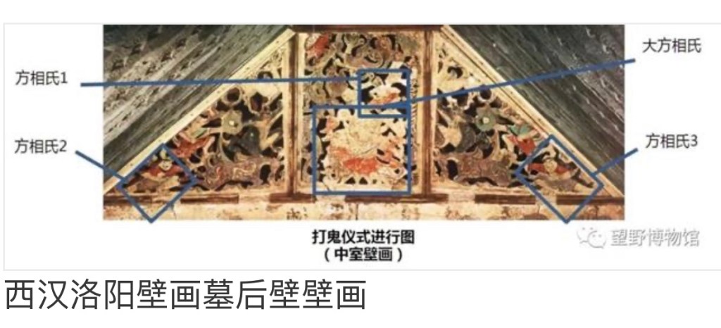 東漢時期,方相氏形象更像畏獸,周圍有四𩆜,打鬼及升天並存。