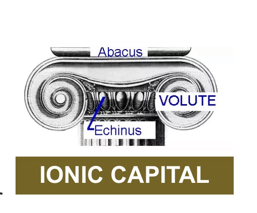 They are not concentric circles but in a spiral form called Volute. For Ionic pillars the height of the column is 8 times the base circumference. Other orders have different measurements. The reason why the bottom of the column shaft is used as the basis of measurement because very often columns are tapered so that the top of the column shaft is narrower than the bottom, a process called entasis.