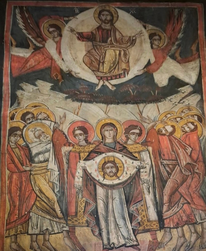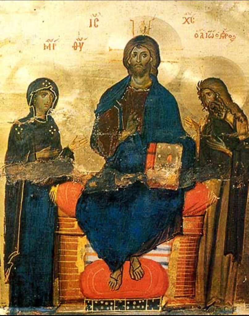 Deesis – Christ in Majesty is flanked by Theotokos and St John the Baptist, both in supplication
