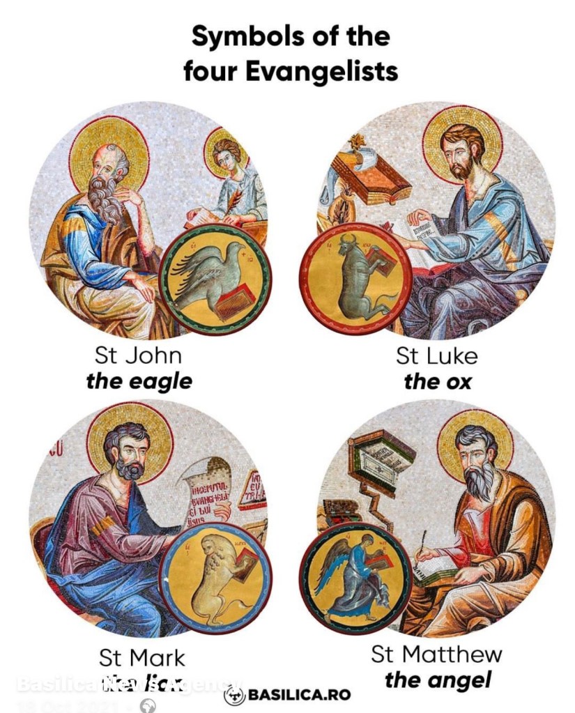 St Mark (Lion), St Luke (Ox), St Matthew (Angel), St John (Eagle