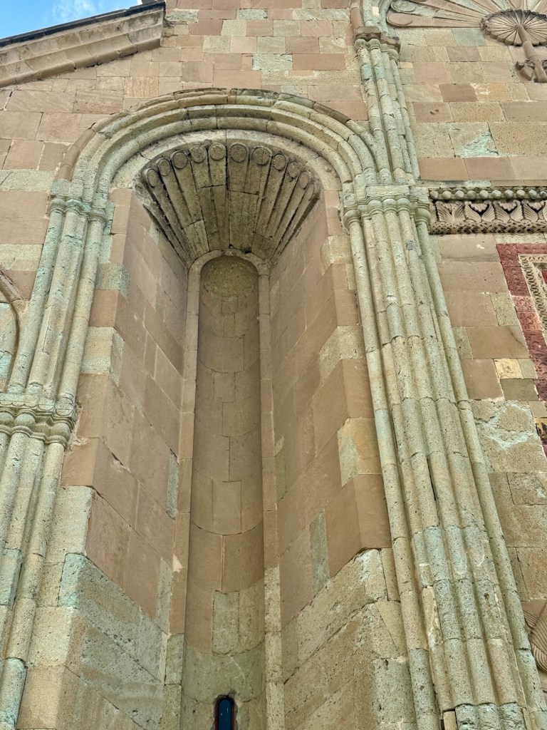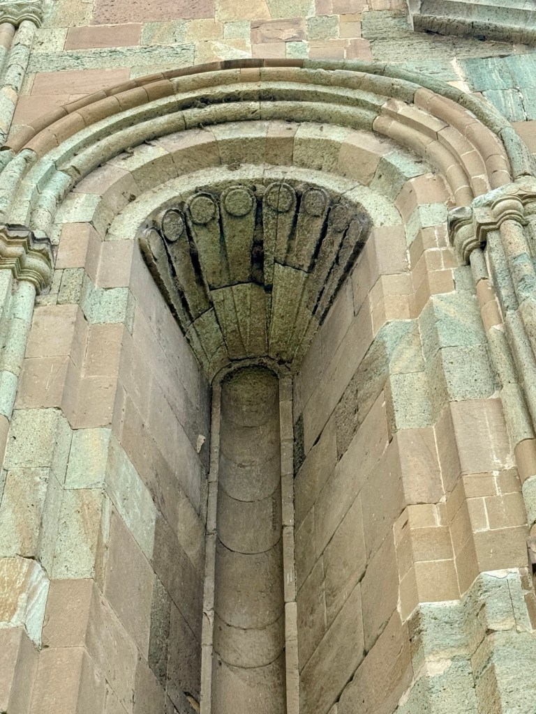 45 degree niches in Armenia is a unique feature. Some are smooth while some have engraved peacock feathers at the top. Most have 12 but some only have 8.