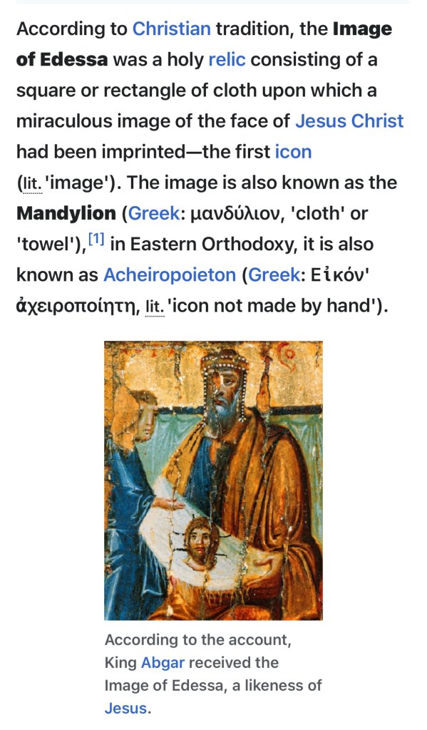 It refers to a small cloth bearing Jesus face. We saw one in the Ubisi monastery, just above the Christ Pantocrator.